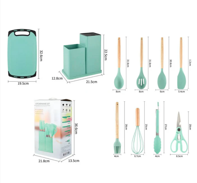Set 19 utensilios de cocina de silicona